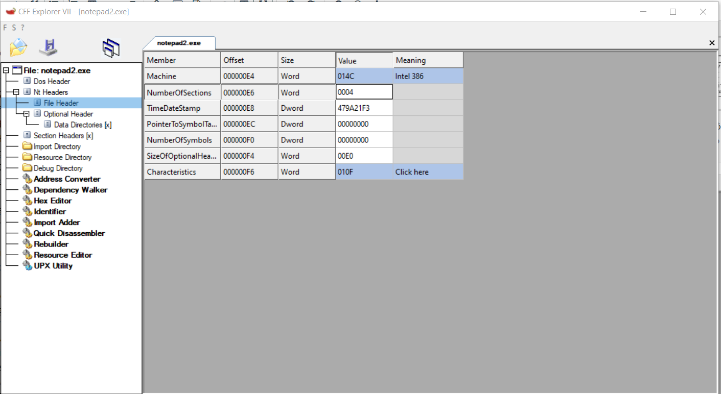 - Đây chính là phần NumberOfSections tôi đã trình bày với các bạn ở trên, ở đây Value của nó chính là số Section Table và bằng 4 đúng như 4 Section Table ở bên trên.