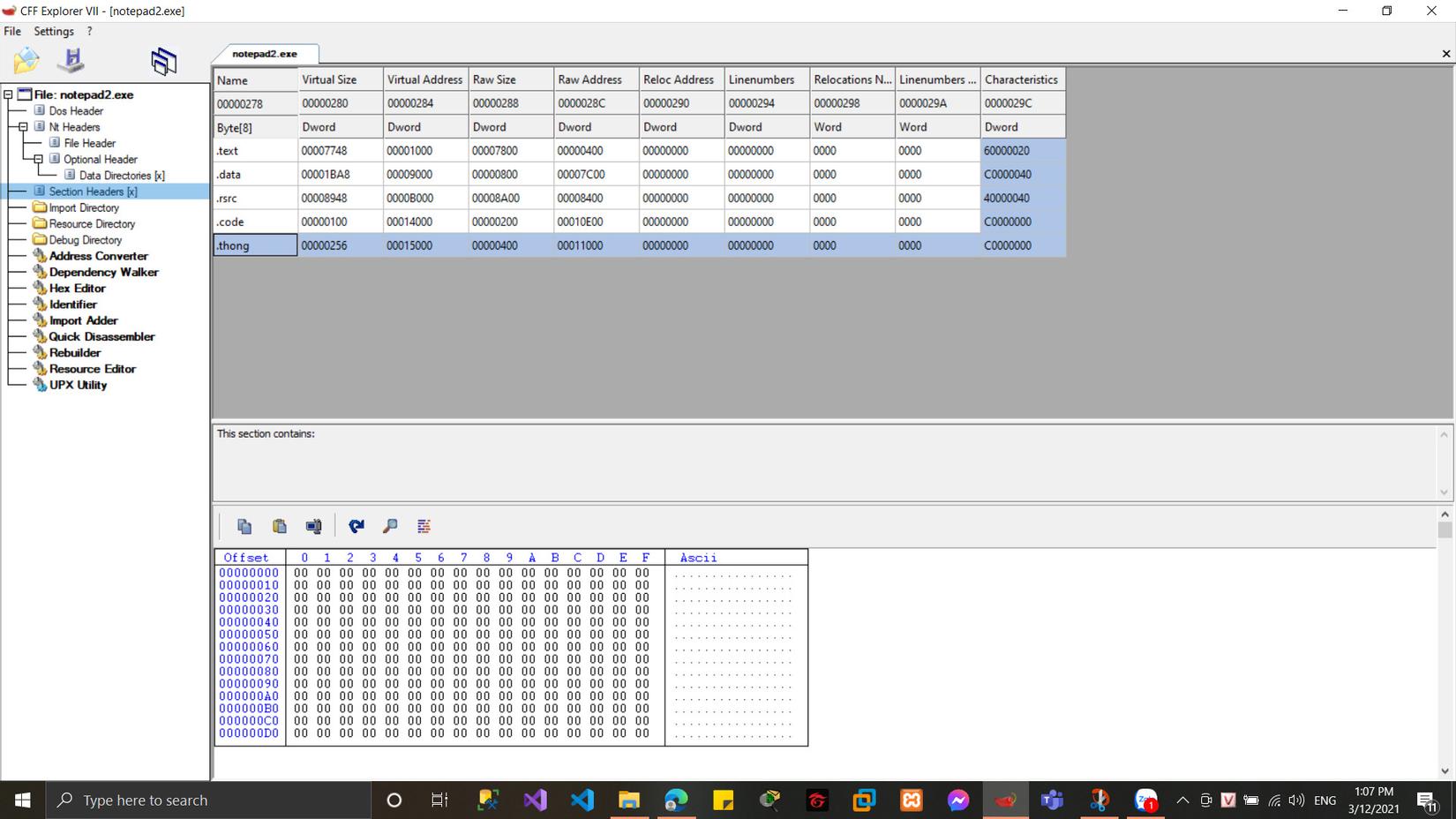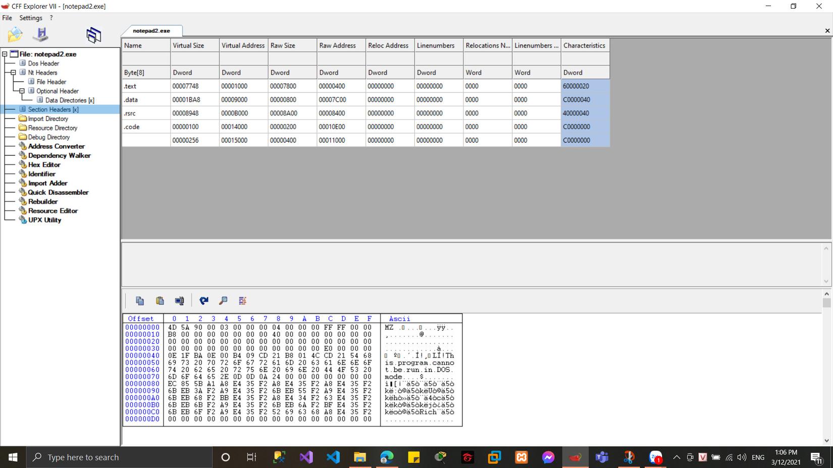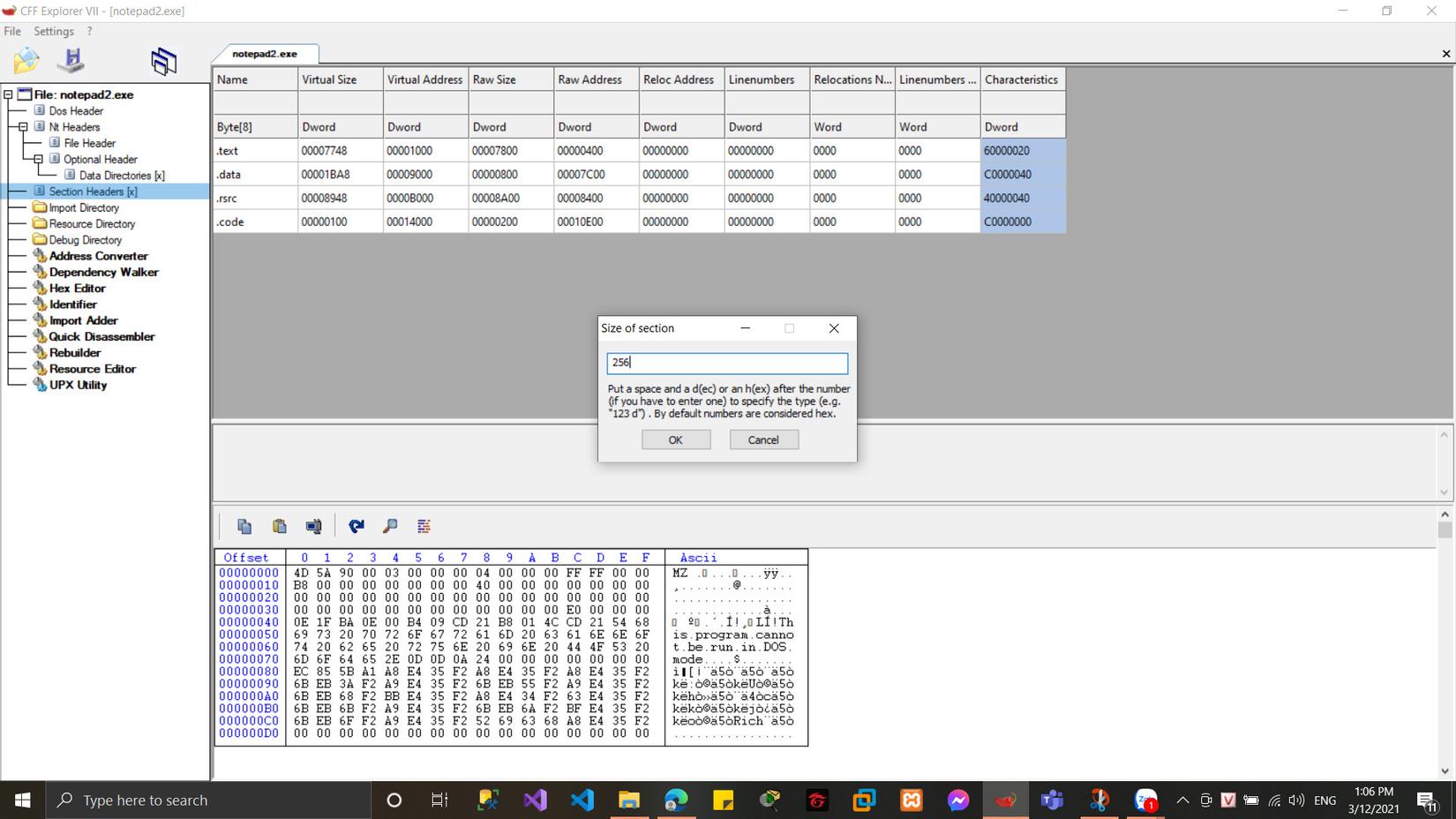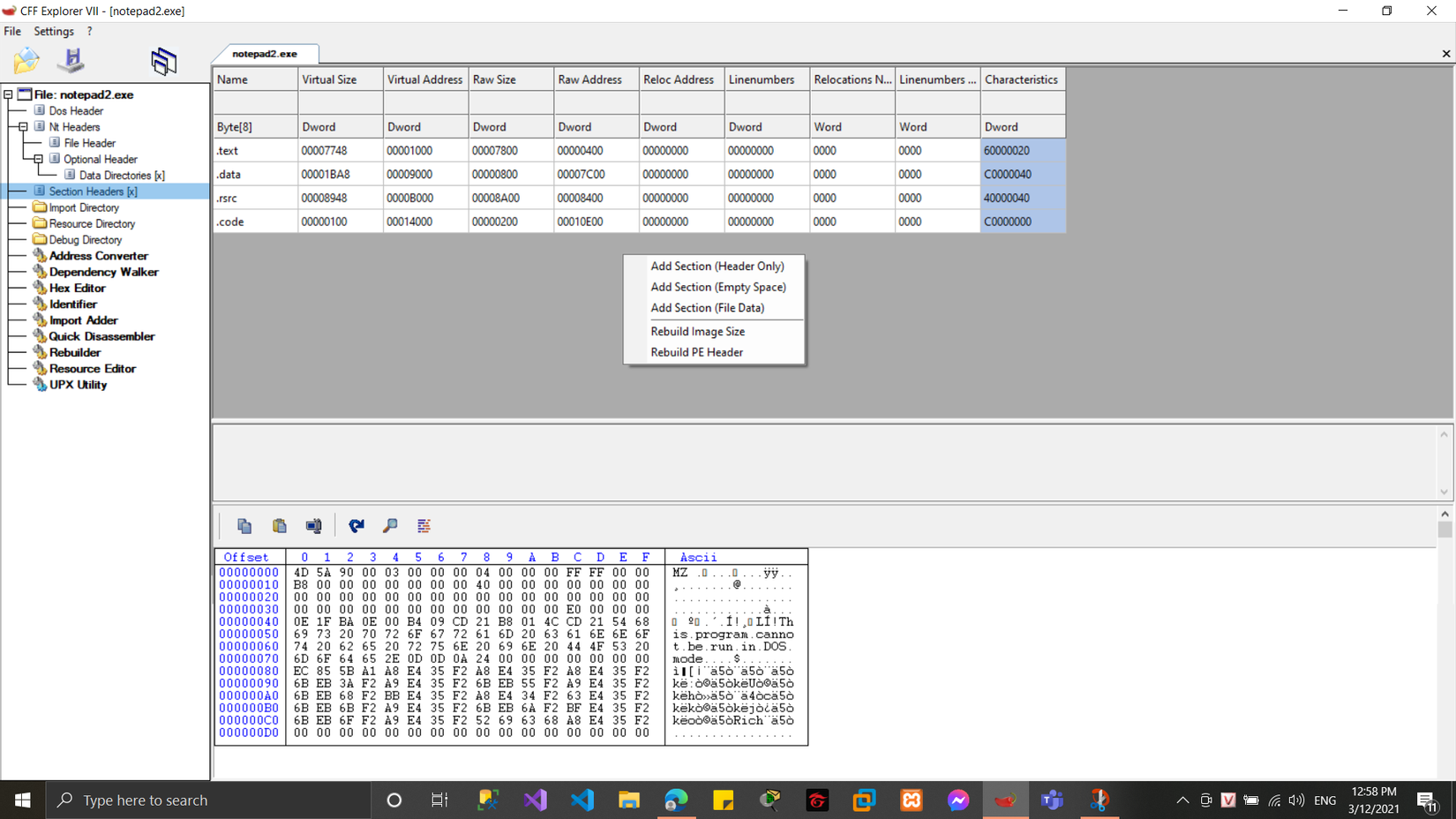 Ta quan sát thì file notepad2.exe chỉ có 4 section của code, việc tiếp theo là chúng ta sẽ thêm 1 section nữa thông qua các thao tác sau: