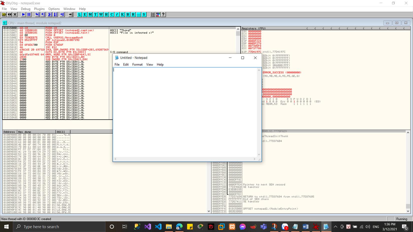Vậy là ta đã thêm thành công rồi, giờ chỉ việc thực thi thì sẽ hiện lên 1 thông báo rồi chạy chương trình notepad như bình thường: