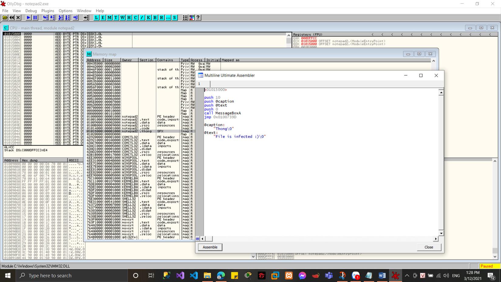 Ở đây tôi đã thêm code assembly, trong đó: