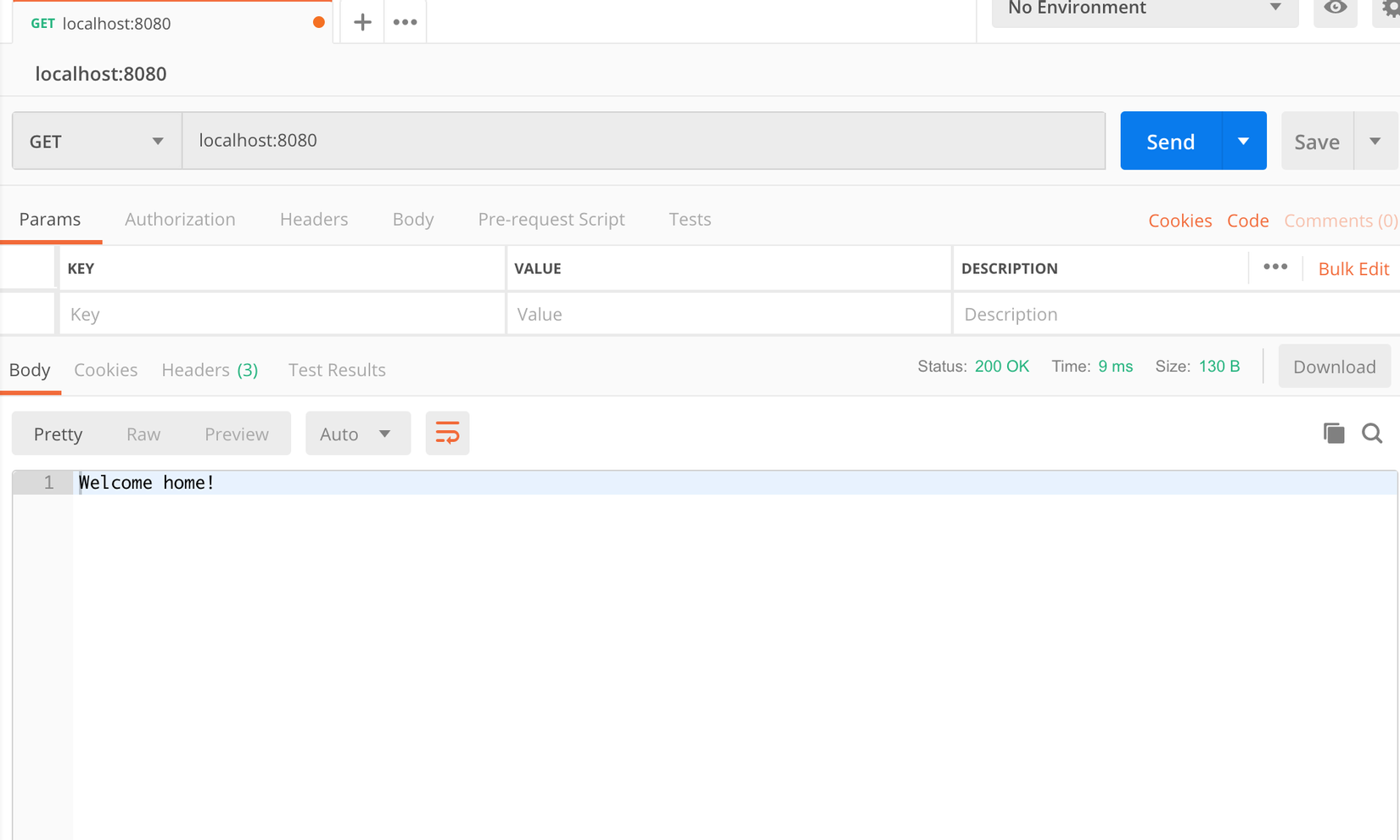 fmt.Fprintf(response, "Welcome home!")
