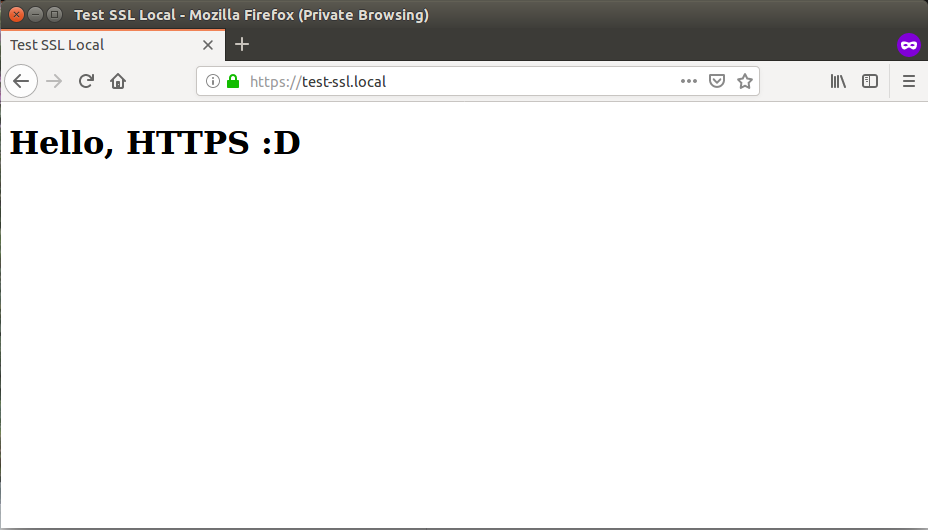 Vậy là xong, bây giờ bạn thử truy cập vào https://test-ssl.local để xem kết quả nhá. Chúng ta sẽ được một trang HTTPS hoàn hảo mà không hề bị màn hình warning và cũng không có dấu gạch chéo đỏ lòm ở trên thanh địa chỉ.