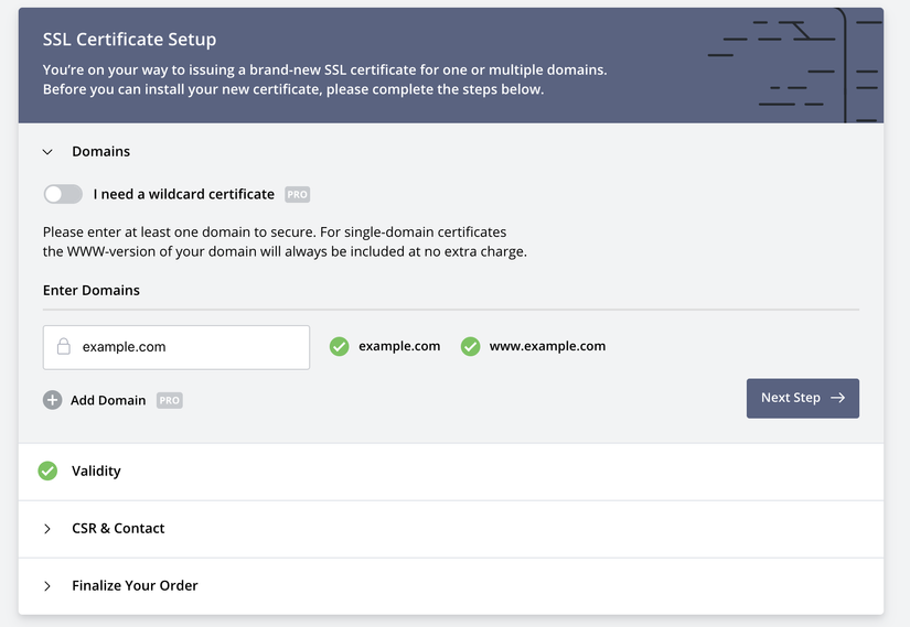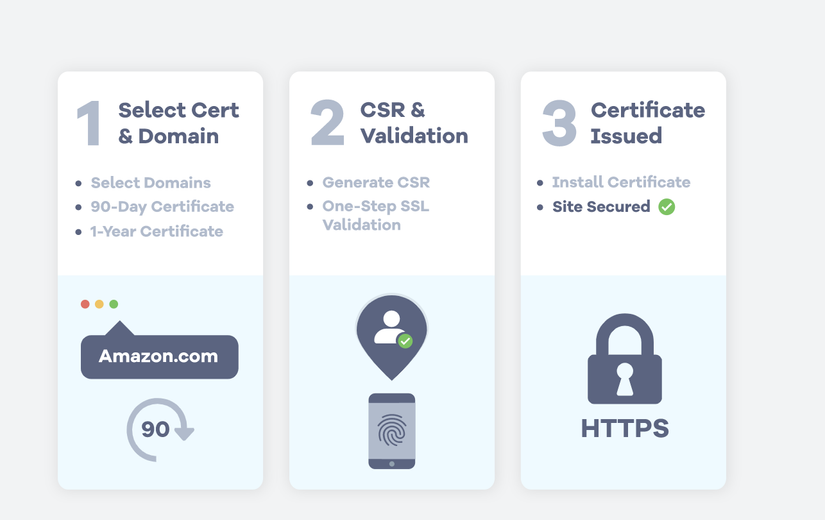 Sau khi register xong, bạn vào Dashboard và click "New Certificate" để tạo mới. Có 3 bước như sau:
