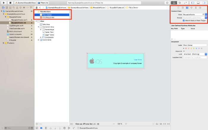 Bây giờ, điều duy nhất chúng ta phải làm để sử dụng reuseable uiview của chúng ta là thiết lập class trong tệp xib thành view mà chúng ta muốn.