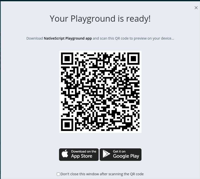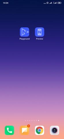 2 app cần tải là playground và preview của nativescript. Playground để quét mã QR, còn preview là app hiển thị.