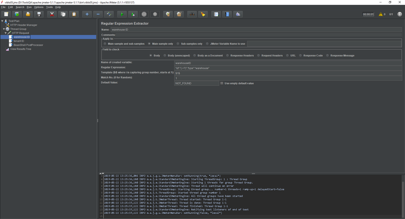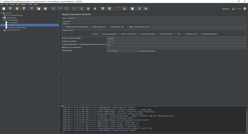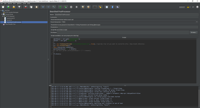 Giả sử mình có tình huống thế này: Call API để tạo mới Warehouse và Tenant, WarehouseID và TenantID trả về từ response data sau khi call API cần được lưu trữ vào file CSV để sử dụng sau này. Chúng ta dùng Regular Expression Extractor để lấy WarehouseID và TenantID từ response data. Tiếp theo, để lưu trữ vào file CSV thì chúng ta cần sử dụng BeanShell PostProcessor .