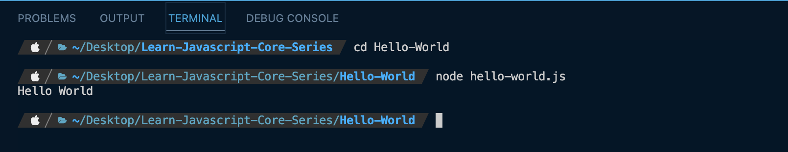 node hello-world.js. DòngHello Worldđã được in ra