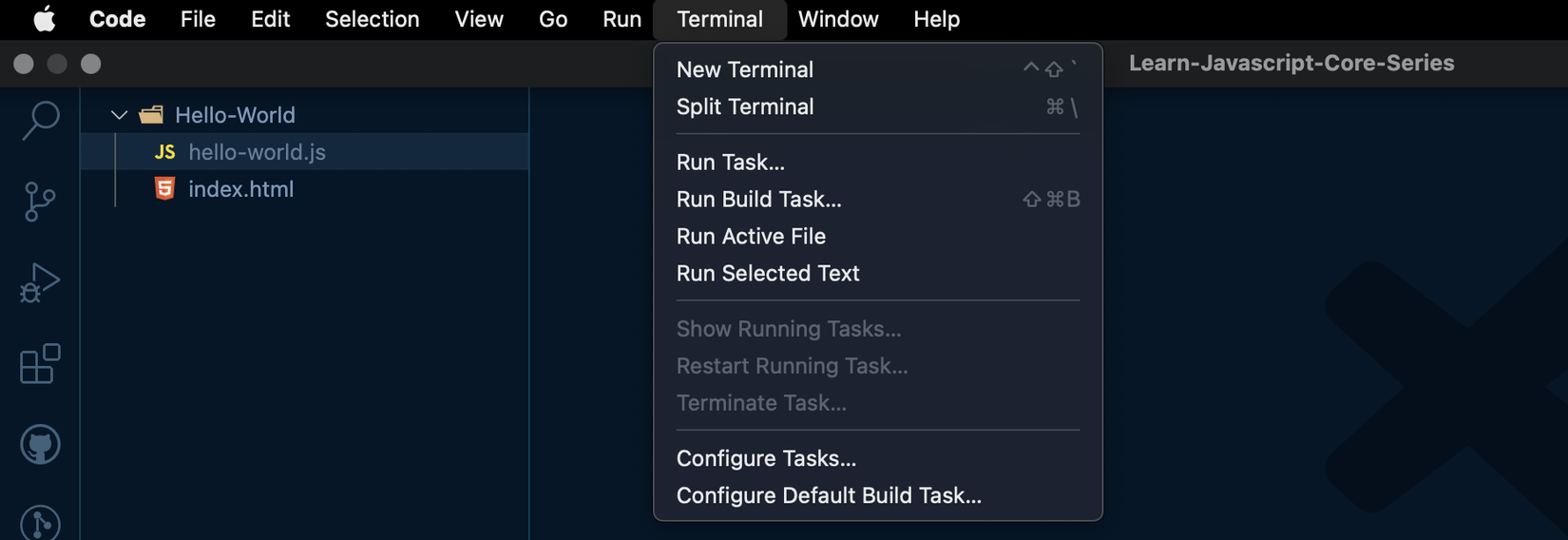 Tạo folder Hello-World và tạo file hello-world.js trong folder