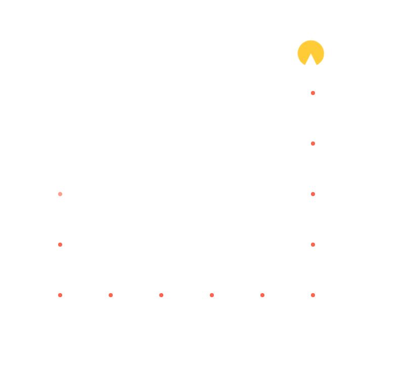Như trên là mình đã định nghĩa ra 2 điểm giữa thay đổi trạng thái (là khi con pacman rẽ), nên keyframe của mình có tổng cộng 4 điểm. Như vậy, tùy vào thời điểm, số lần muốn thay đổi trạng thái như nào mà các bạn sẽ tạo ra số keyframe tương ứng với thời điểm mong muốn, và pacman thay đổi dần dần từ trạng thái của keyframe trước tới trạng thái của keyframe tiếp theo, như là di chuyển từ vị trí ban đầu tới vị trí 33%. Bạn có thể xem ví dụ pacman của mình tại đây nhé: