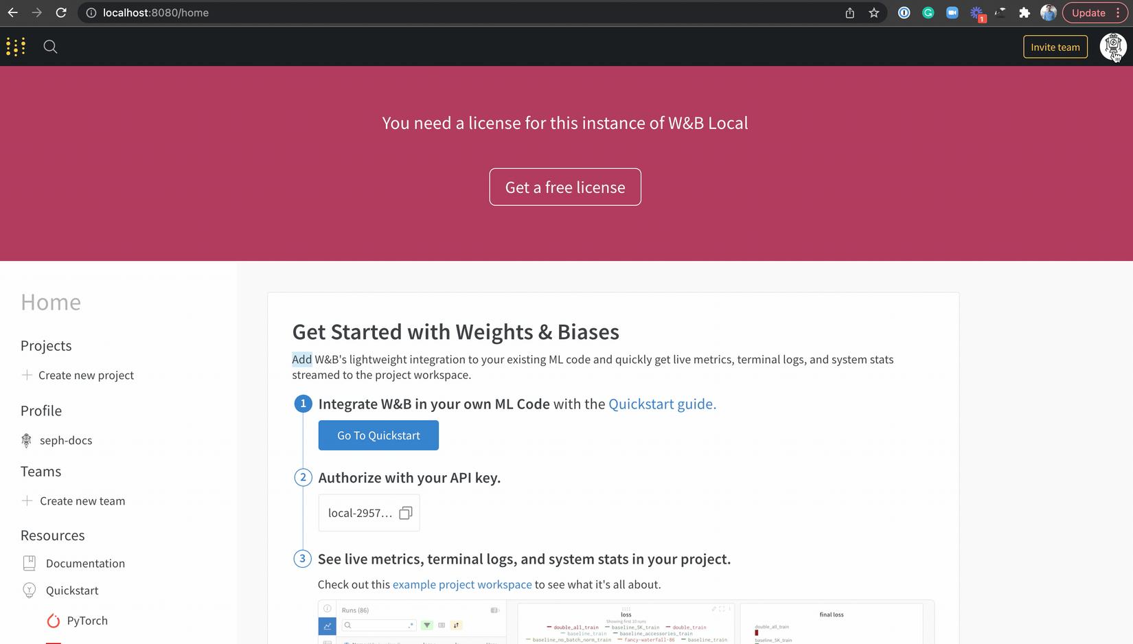 wandb login --host http://localhost:8080