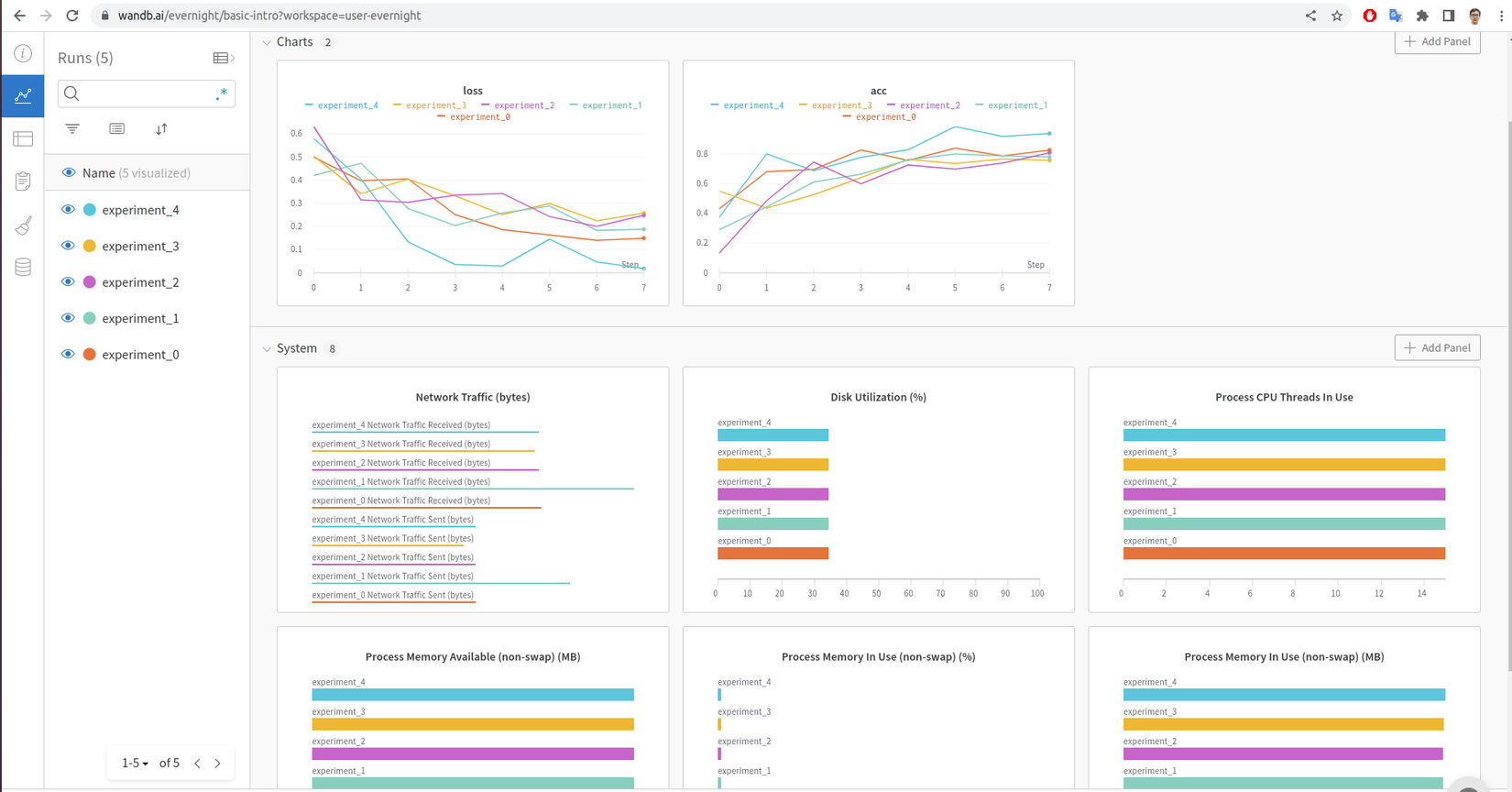 Để xem kết quả của 5 lần thử một cách trực quan nhất, bạn có thể đăng nhập trang wandb.ai trên trình duyệt.