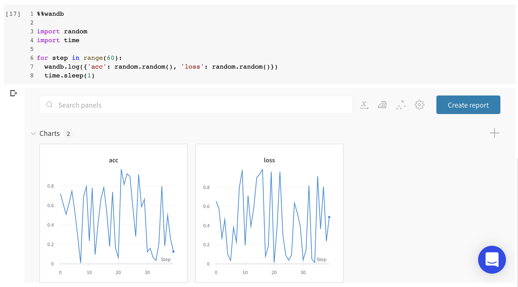 wandb.log({"acc": acc, "loss": loss})