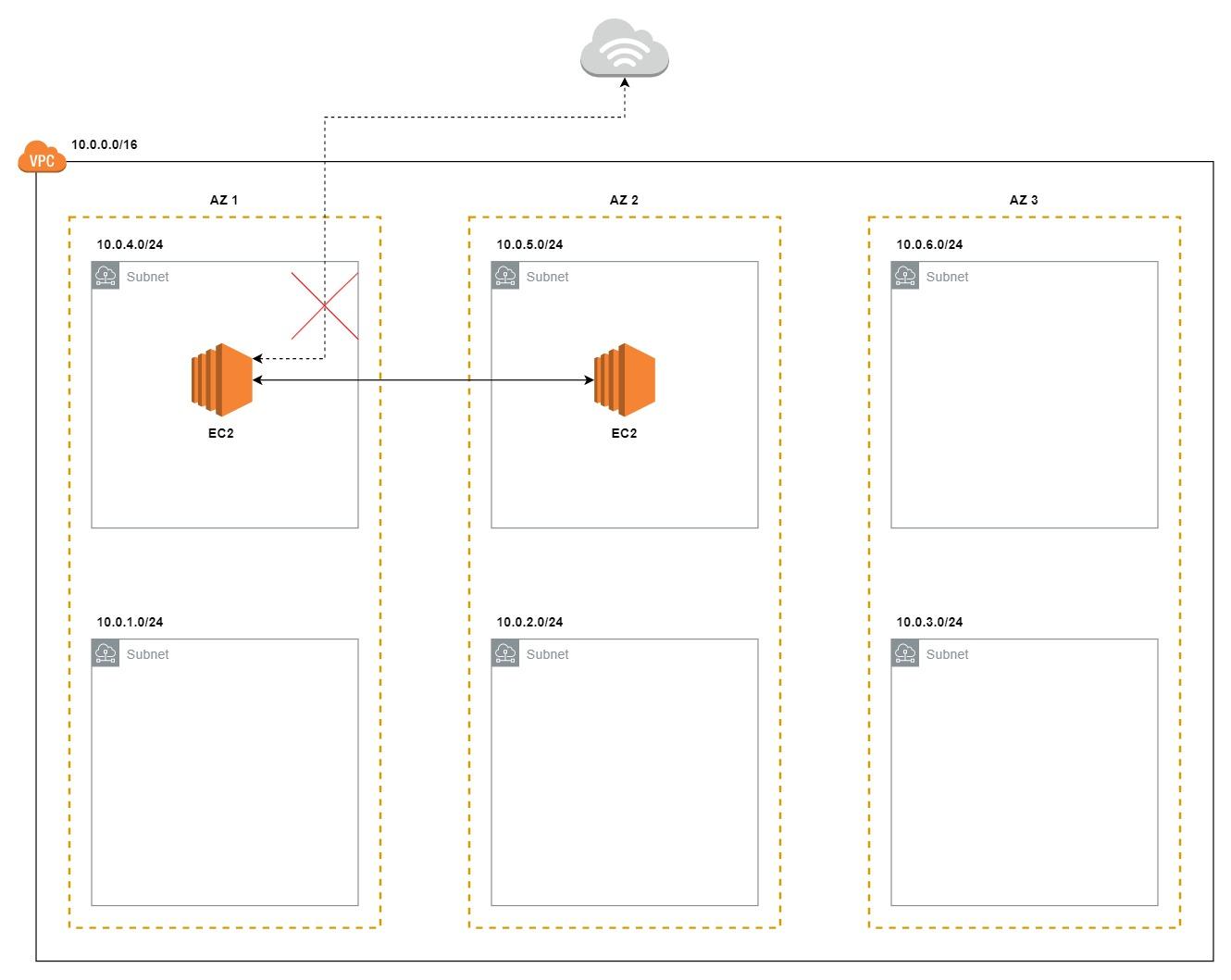 Oke, giờ các service của ta bên trong public subnet có thể tương tác được với bên ngoài, vậy còn các private subnet thì sao? Hiện tại thì nó không thể tương tác được với bên ngoài, nhưng ta không gán IG vào nó được, vì IG là hai chiều ra vào, trong khi ta chỉ muốn 1 chiều thôi là chiều tương tác từ bên trong private subnet ra bên ngoài và ta không muốn có chiều ngược lại.