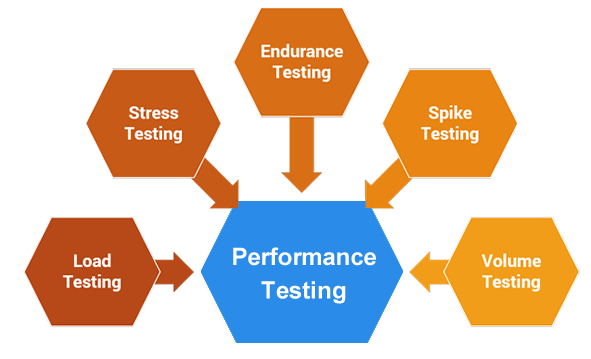 | Load test | Stress test | Volume test | Endurance test | Spike Test |