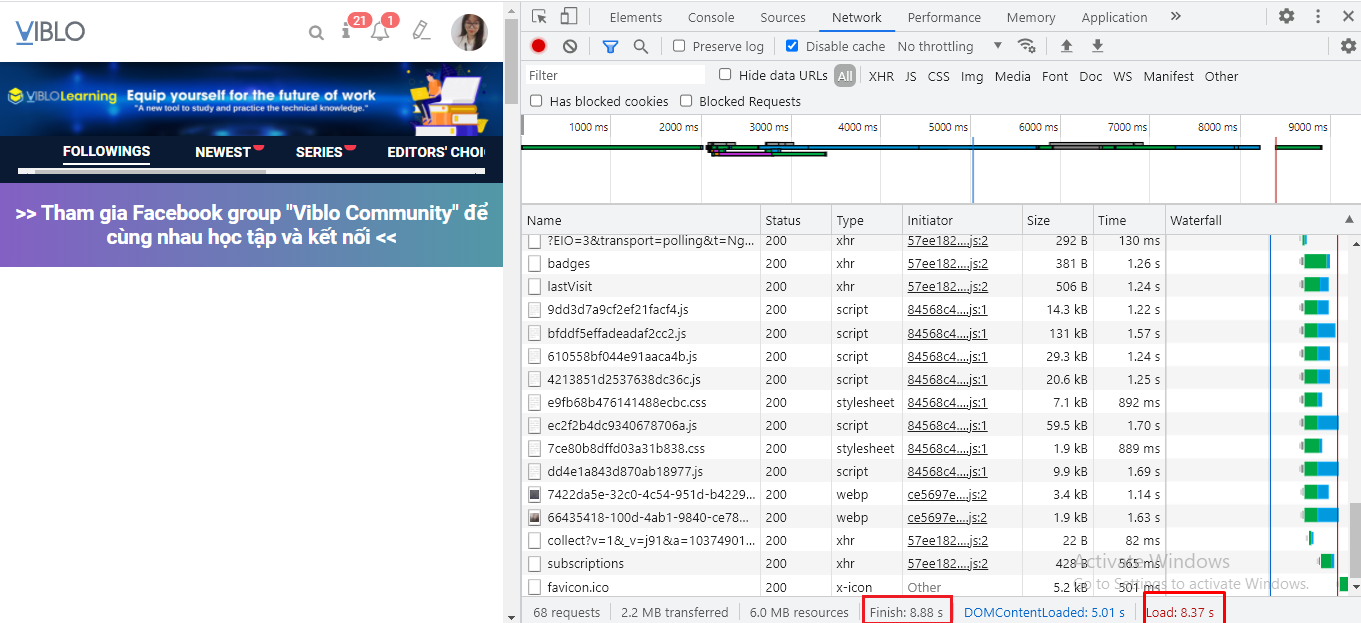 - Finish thời gian load hết toàn bộ dữ liệu ra màn hình. Ví dụ vào màn hình có phân trang, chúng ta chỉ view trang đầu nhưng có những hệ thống nó load hết dữ liệu của các trang sau nên thời gian finish thường lâu hơn. Tuy nhiên cũng cần cải thiện chỗ này để đảm bảo perfomance