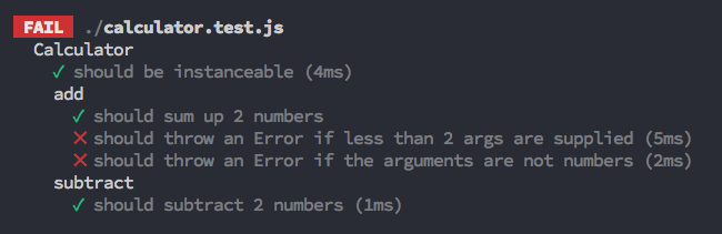 một Unit Test bắt đầu bằng một describe tham chiếu đến đối tượng thử nghiệm và it báo cáo cho từng trường hợp thử nghiệm