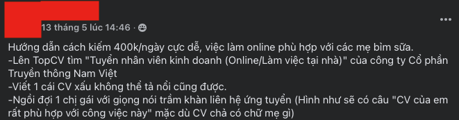 - "Việc làm thêm kiếm tiền cho các mẹ bỉm sữa".