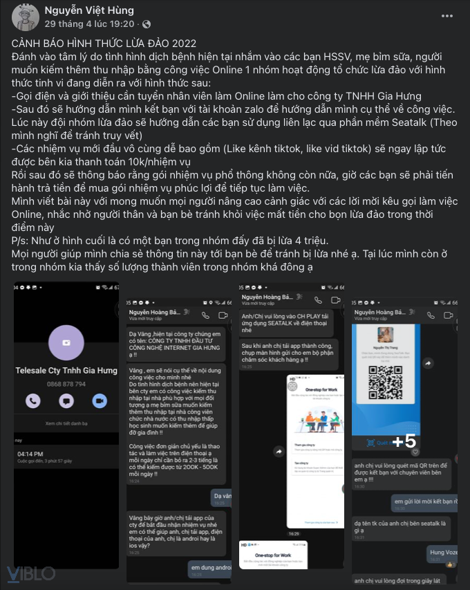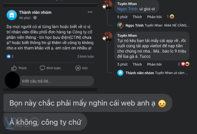 Bình thường mình cũng chưa được gặp các đối tượng lừa đảo qua mạng như này bao giờ. Không ngờ lần này lại có một người quen của mình gặp được. Những bài cảnh báo trước chiêu trò lừa đảo qua mạng cũng có nhiều rồi, tuy nhiên lần này sự việc lại xảy ra ngay gần mình, do đó mình không thể không viết một bài cảnh báo nữa. Trong bài viết mình đã đưa ra đầy đủ phân tích, diễn biến và ảnh chụp tin nhắn giữa người tham gia và các đối tượng lừa đảo.