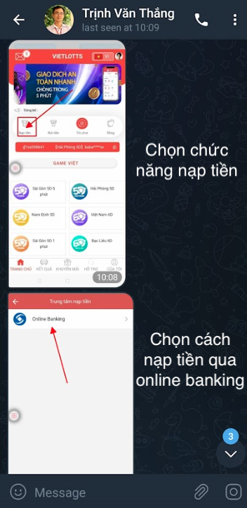 Nhiệm vụ của chúng ta bây giờ đã trở thành "đặt lệnh theo yêu cầu" trên hệ thống VIETLOTTS. Điều kiện để đặt lệnh là tài khoản nạp vào tối thiểu 100k. Vì chúng ta đã được biếu không 150k quá đơn giản nên ở bước này nhiều người sẽ tin lời đối tượng: "đằng nào cũng được 150k rồi mà, nạp 100k vào thì mình chũng có mất gì đâu". Thậm chí đối tượng Trịnh Văn Thắng còn nói rằng lần đặt lệnh theo chỉ thị đầu tiên này chúng ta sẽ được hưởng 100% lợi nhuận, bất kể ăn được bao nhiêu tiền, chỉ từ các lệnh sau chúng ta mới bị xẻo 6 phần lợi nhuận.