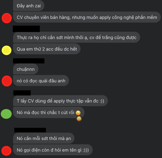 Một ngày nọ, đứa em mình bất ngờ nhận được cuộc gọi từ số máy lạ. Người đó nói rằng thấy CV của em mình phù hợp với vị trí làm việc tại công ty họ. Nhưng tất nhiên chẳng có cái gì gọi là phù hợp ở đây hết, vì theo như các em của mình kiểm tra thử thì chỉ cần gửi một cái CV rất là rác lên thôi cũng đã được gọi rồi.
