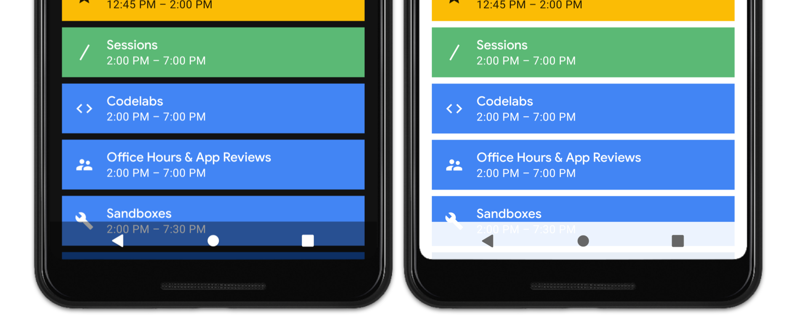 System bar thay đổi màu sắc dựa trên nội dung đằng sau nó. Do đó, nếu nội dung ở trên sáng, nó sẽ chuyển sang tối, và ngược lại, nó chuyển sang màu sáng khi nội dung trước nó màu tối. Đây là những gì chúng ta gọi là thích ứng màu sắc linh hoạt.