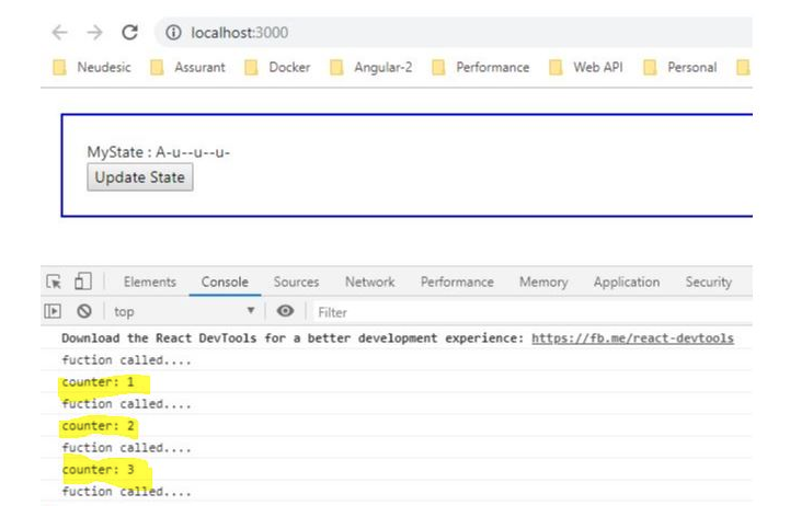 Nhưng, Ở đây chúng ta thấy một vấn đề mà mọi giá trị đếm stateChage là 1 và lý do rất đơn giản mỗi lần render thì biến counter được gán lại.