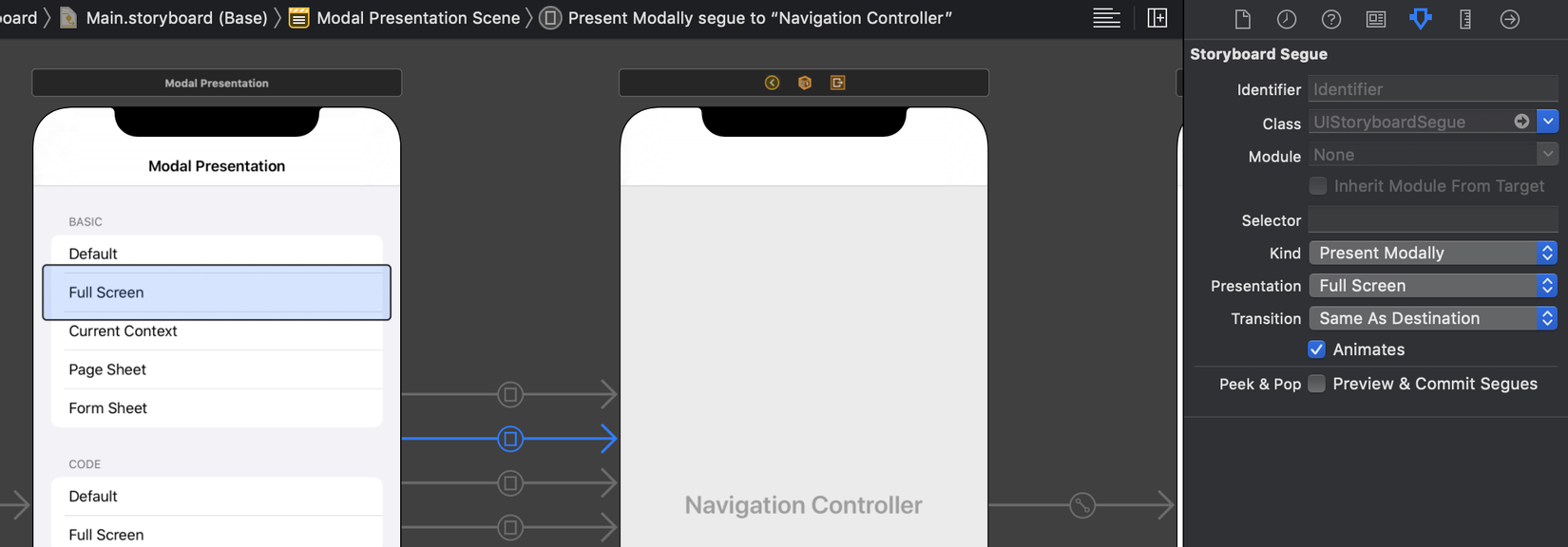 Bên cạnh sự thay đổi cách hiển thị mặc định như trên, thì Apple vẫn để cho chúng ta có thể sử dụng cách hiển thị như cũ, bạn có thể sử dụng cách cũ bằng cách set modalPresentationStyle là .fullScreen