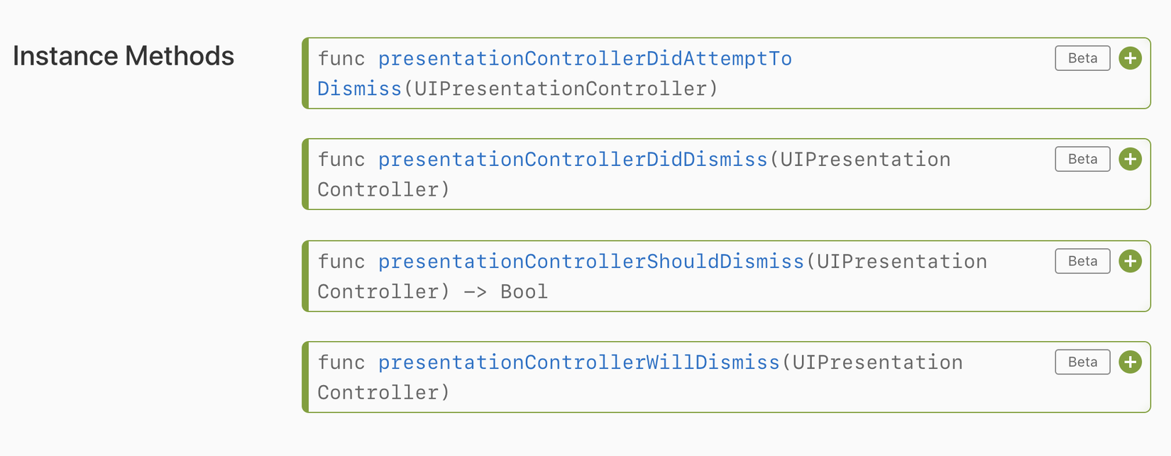 Apple đã thêm 4 phương thức mới theo UIAdaptivePftimeationControllDelegate để cho việc nhận phản hồi cho sự tương tác của người dùng với việc swipe màn hình.