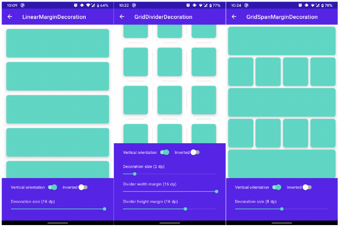 Decorator là một thư viện giúp margins và dividers trong RecyclerView.