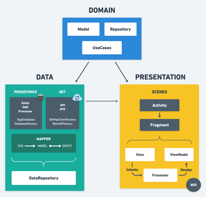 Ứng dụng demo là một dự án nhiều module được kết nối với GitHub API cho phép tác giả liệt kê tất cả các repository công khai của họ. Nó có thể được sử dụng khi bị ngắt kết nối, với một bản sao lưu của tất cả dữ liệu được lưu trữ trong database (Room). Dark mode cũng có sẵn. Toàn bộ ứng dụng được bao phủ với các unit, UI và functional/integration (= use case). Nó sử dụng các lib như Dagger 2, RxJava 3, Room và AndroidX.