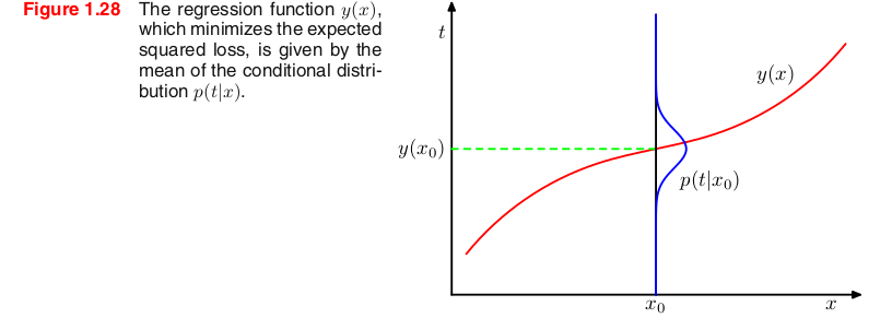 Đây chính là trung bình của xác suất điều kiện phụ thuộc hay còn được biết đến là "regression function" . Ta có thể hình dung như hình dưới đây.