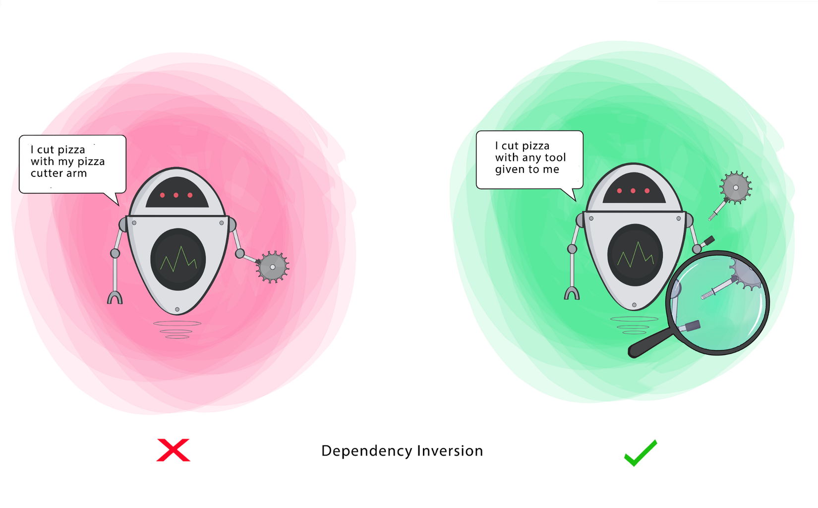 2. Interface (abstraction) không nên phụ thuộc vào chi tiết, mà ngược lại. ( Các class giao tiếp với nhau thông qua interface, không phải thông qua implementation.)