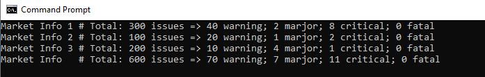 "=> {warning_color}{warning_count} warning; {major_color}{major_count} issue; {cirtical_color}{cirtical_count} issue; {fatal_color}{fatal_count} issue;"