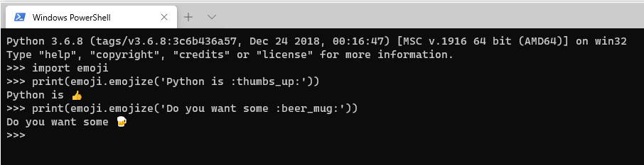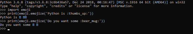 Ngó nghiêng trên các thư viện của Python trên pypi, có một thư viện mà tôi khá ưng là emoji (https://pypi.org/project/emoji/). Để sử dụng nó thì tạo virtual environment và install thư viện.