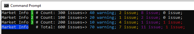 template = "{highlight_backgroud}{default_color}Market Info{reset}   # Total: {issue_color}{issue_count} issues{default_color}"\