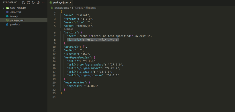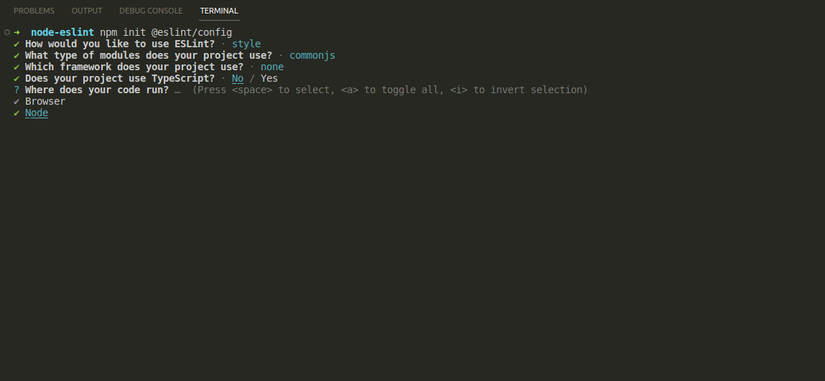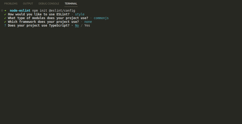 mkdir node-eslint && cd node-eslint && npm init -y && code .