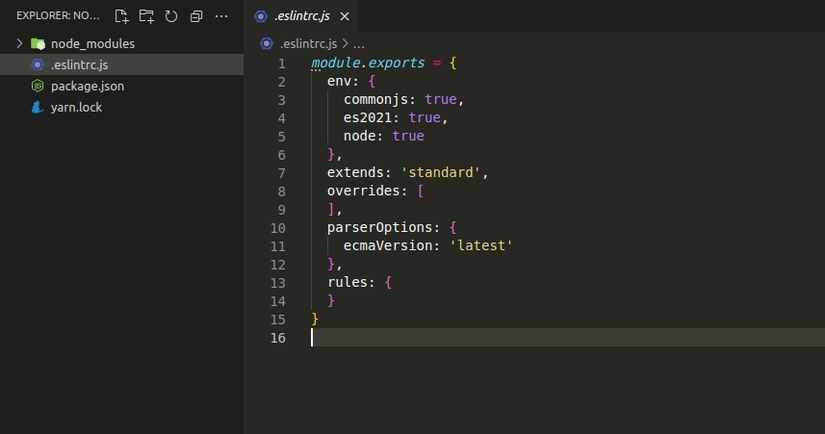 Sau khi chạy xong, chúng ta sẽ có được file .eslintrc.js chứa các config và rules của project.