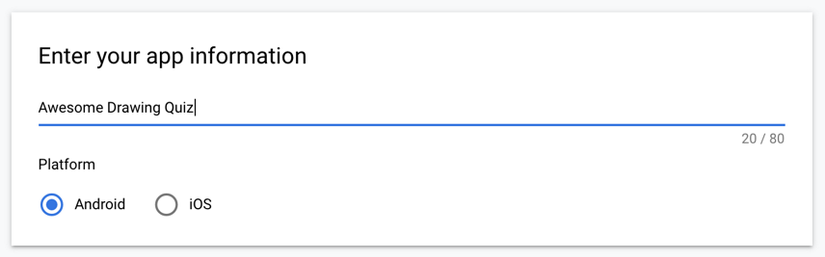 Awesome Drawing Quizvào ô tên ứng dụng, và chọn Android làm nền tảng.