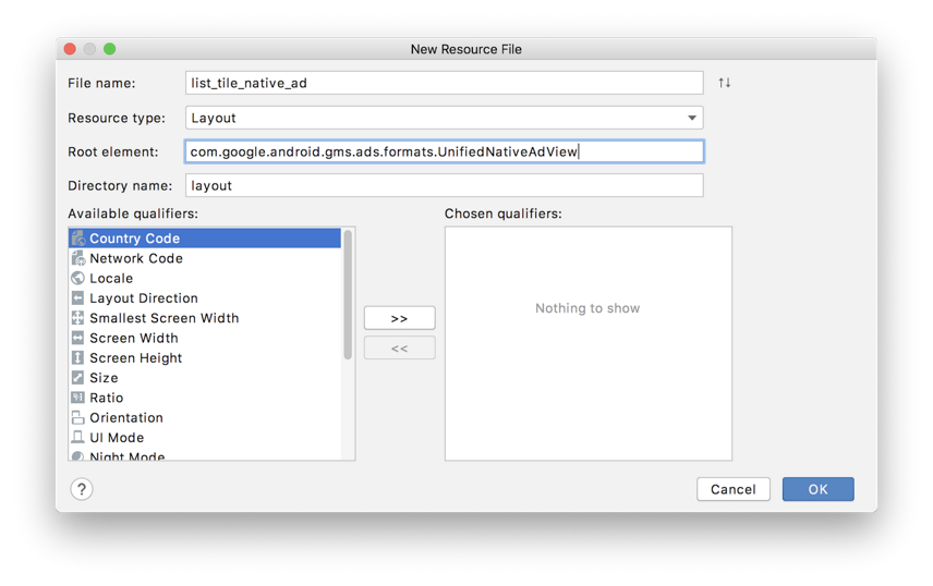 ListTileNativeAdFactoryvào trường File và chọn Empty File làm loại tệp.