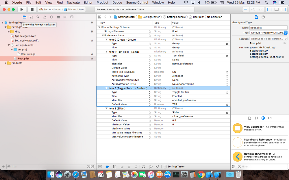 Lưu ý: Đây là hướng dẫn cơ bản về settings.bundle. Có một số tùy chọn nâng cao hơn như trang cài đặt con, thêm thanh trượt, v.v. rất dễ thực hiện mà tôi chưa đề cập ở đây.