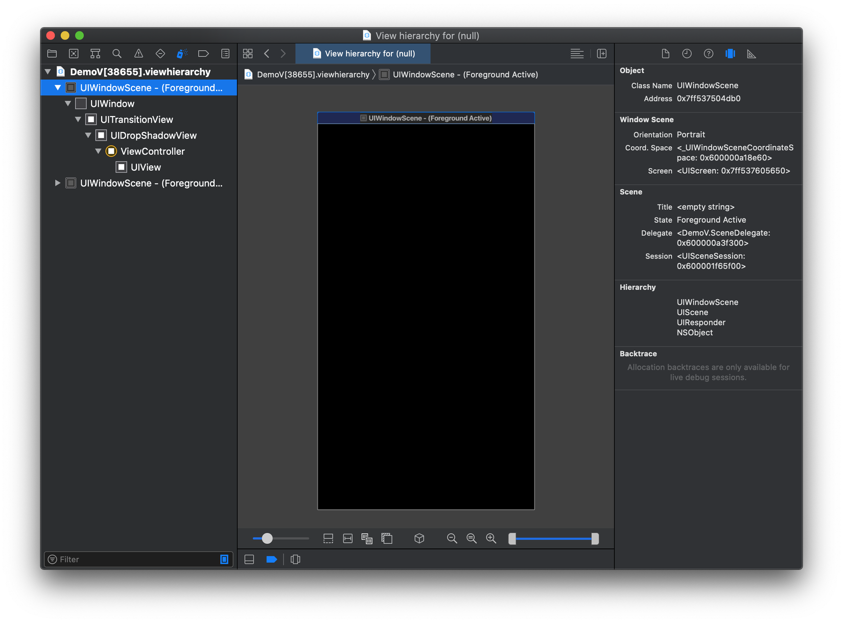 Với cập nhật mới trên Xcode 12 bạn có thể export debug hierarchy và lưu lại. Bằng cách Chọn File → Export View Hierarchy.