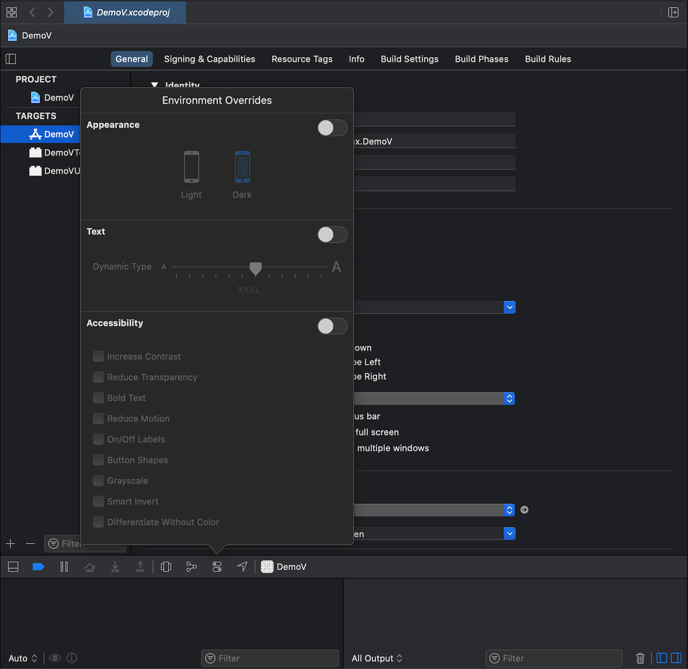 Hoặc trong Xcode, khi ứng dụng của bạn run debugger chọn Environment Overrides trên debug bar sẽ có popup suất hiện cho phép bạn switch chế độ