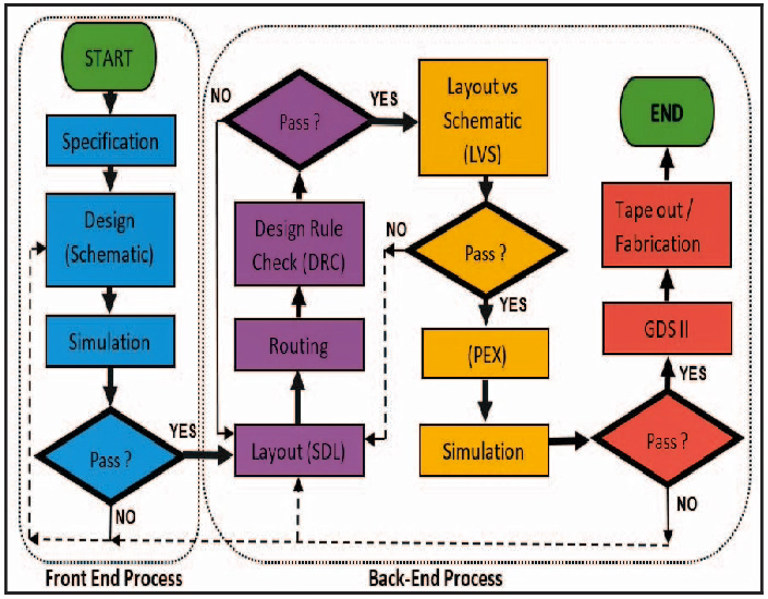 Quá trình thiết kế chip thường được chia thành hai giai đoạn chính: "front end" và "back end". Mỗi giai đoạn này có các bước cụ thể, mục tiêu và công cụ khác nhau. Dưới đây là mô tả chi tiết về các bước trong mỗi giai đoạn:
