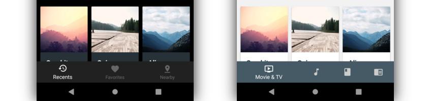 Thành phần phổ biến nhất hiện nay là thanh điều hướng phía dưới (Bottom navigation). MaterialX hiện cung cấp tám thanh điều hướng phía dưới đẹp mắt cho bạn lựa chọn. Đây là hai thanh như vậy: