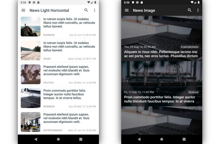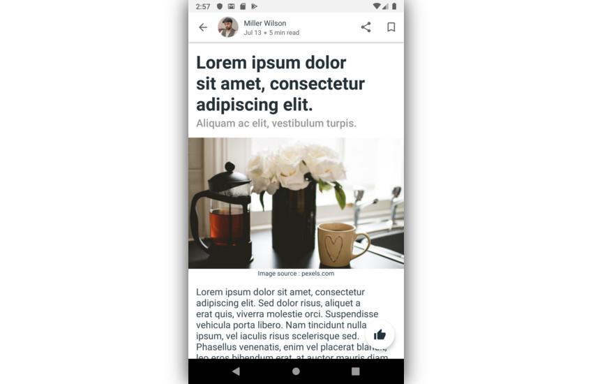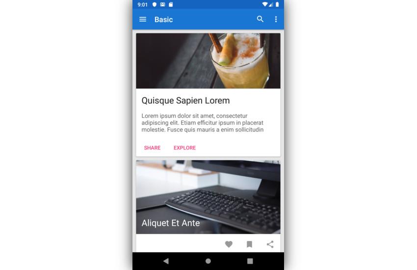 Material design có nhiều bố cục bạn có thể sử dụng để hiển thị bài viết của mình. Những bố cục dễ chịu này có thể kết xuất trơn tru cả văn bản và hình ảnh