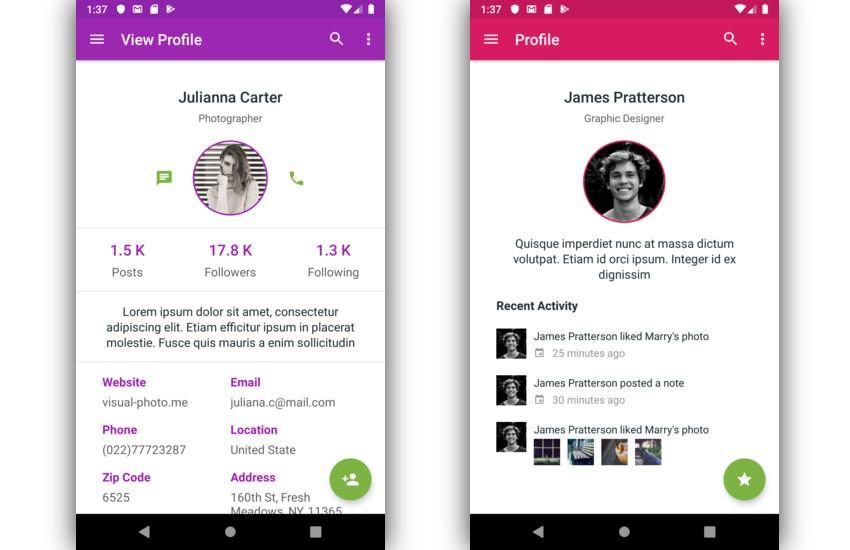 Được phát triển bởi Envato Elite, tác giả Dream Space, MaterialX là thư viện cung cấp các thành phần giao diện cao cấp có sẵn trên CodeCanyon. Ngoài các thành phần UI cơ bản như nút, thẻ và thanh trượt, nó cung cấp hàng trăm bố cục Material Design thủ công độc đáo mà bạn có thể sử dụng trực tiếp trong ứng dụng của mình. Như vậy, trong khi làm việc với các bố cục này, bạn sẽ không phải lo lắng về các tác vụ như định vị các thành phần UI, điều chỉnh lề và phần đệm của chúng hoặc thậm chí tạo hiệu ứng cho chúng.