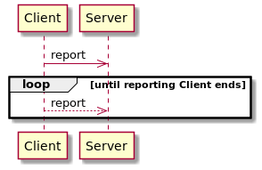 @startumlparticipant Clientparticipant ServerClient ->> Server: reportloop until reporting Client endsClient -->> Server: reportend loop@enduml |