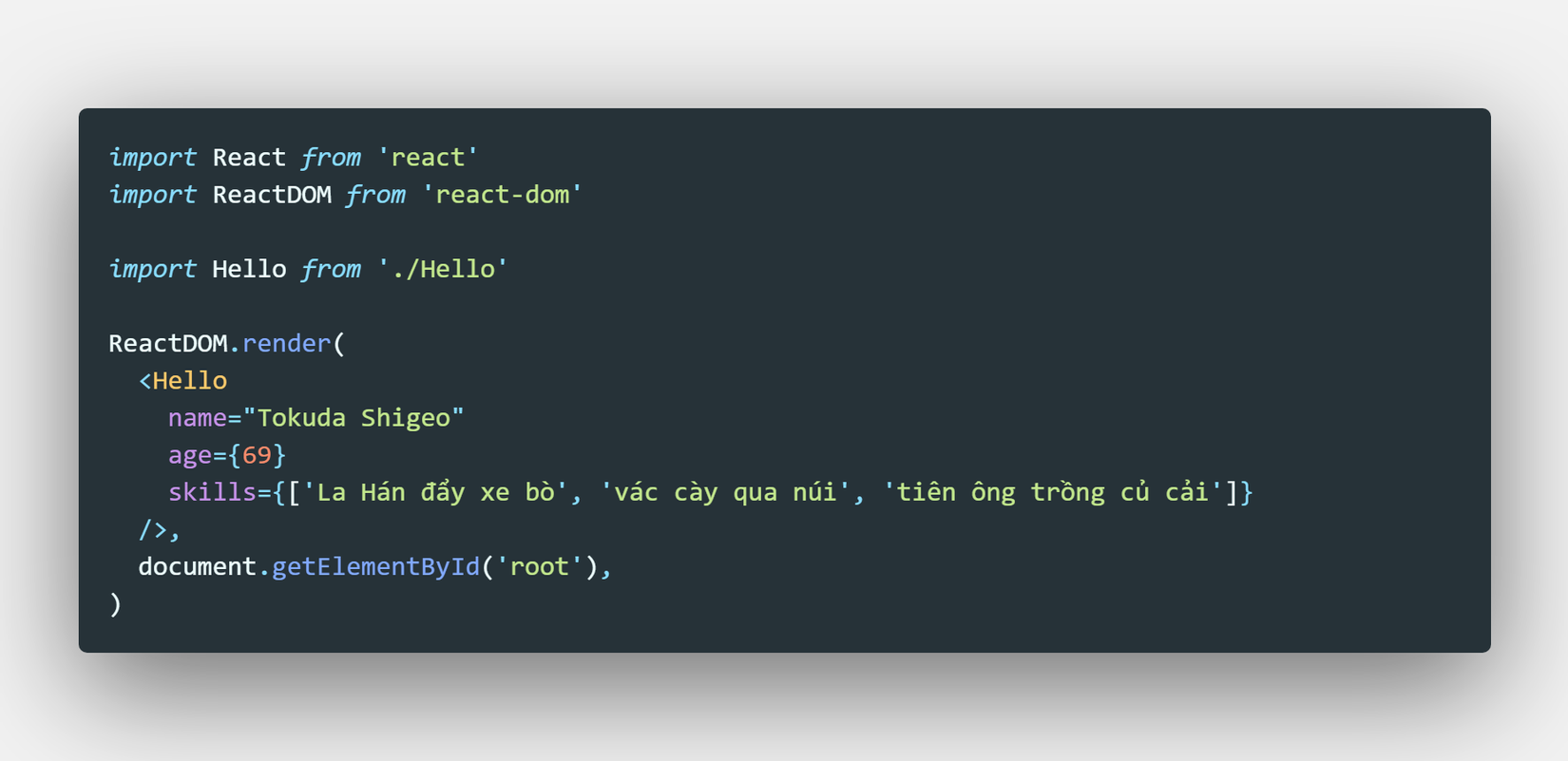 Tạo file root component (cũng là entrypoint được ta cấu hình trong file webpack.config)