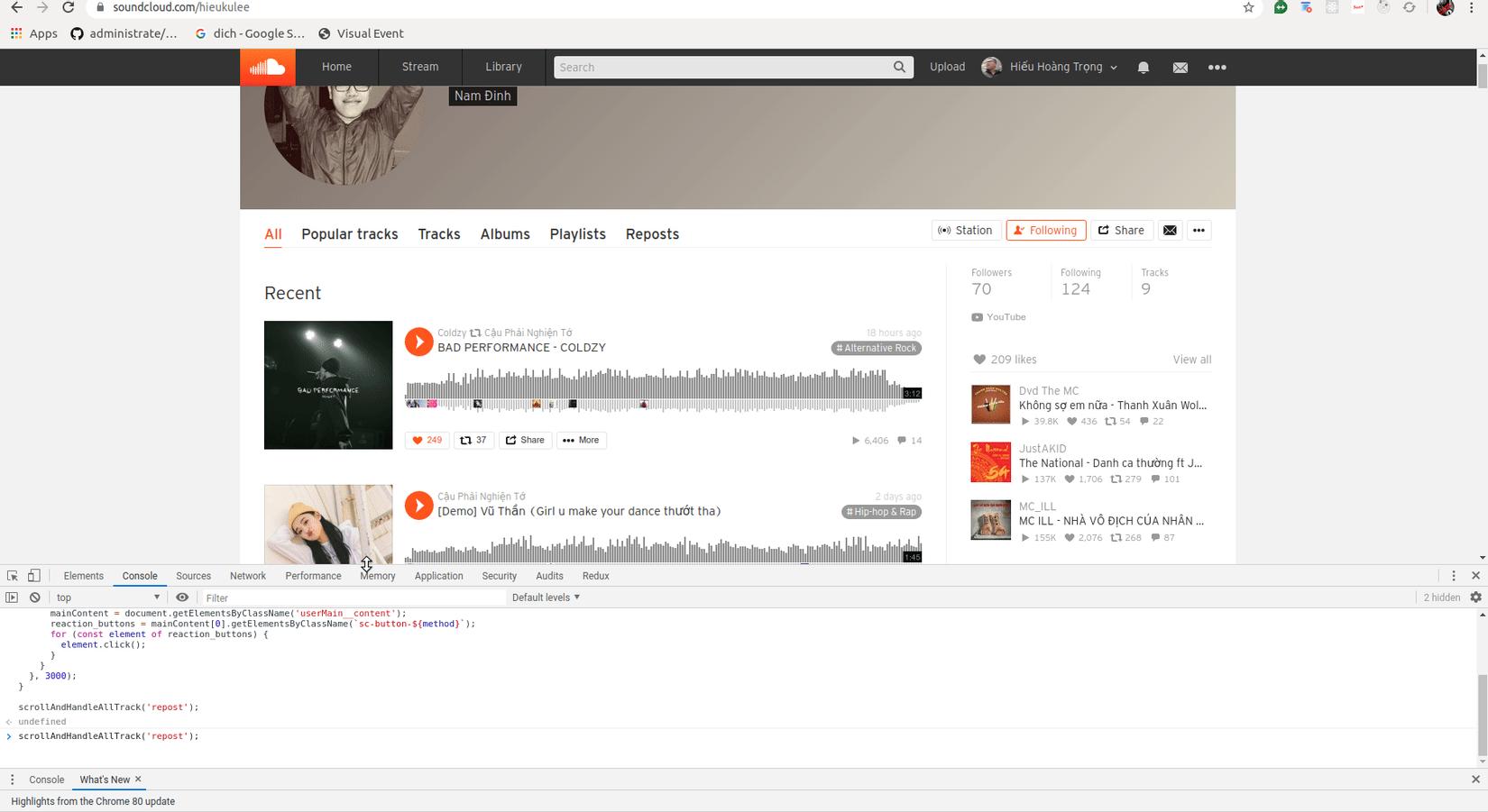 Giả sử bây giờ crush của bạn làm nhạc trên soundcloud và bạn muốn thể hiện tình yêu đuyên doại với crush. Một trong những cách bạn có thể làm là like + repost tất cả các track của crush cho vui. Crush sẽ nhận một đống notification và thốt lên rằng "Oh wtf this guy is mah craziest fan" . Ở bài viết này, mình sẽ không đề cập đến tính khả thi trong câu chuyện tình fan-idol của bạn, mình chỉ giúp bạn thực hiện công việc trên. Sau đây mình sẽ giúp bạn viết 1 đoạn script rất đơn giản và hướng dẫn bạn auto like hoặc auto repost tất cả các track trên trang soundcloud của một ai đó . Tuy nhiên, phần mình muốn nhấn mạnh là CÁI KẾT của việc này