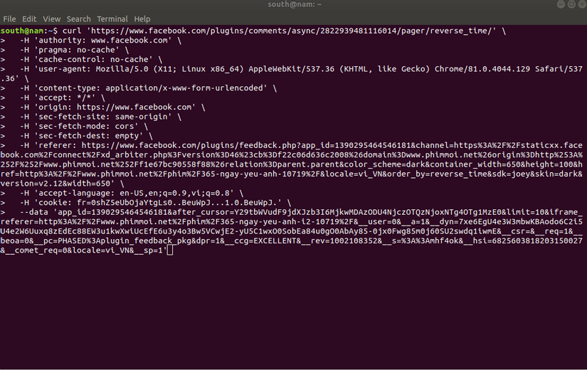 --data 'app_id=1390295464546181&after_cursor=Y29tbWVudF9jdXJzb3I6MjkwMDAzODU4NjczOTQzNjoxNTg4OTg1MzE0&limit=10&iframe_referer=http%3A%2F%2Fwww.phimmoi.net%2Fphim%2F365-ngay-yeu-anh-i2-10719%2F&__user=0&__a=1&__dyn=7xe6EgU4e3W3mbwKBAodo6C2i5U4e2W6Uuxq8zEdEc88EW3u1kwXwiUcEfE6u3y4o3Bw5VCwjE2-yU5C1wxO0SobEa84u0gO0AbAy85-0jx0Fwg85m0j60SU2swdq1iwmE&__csr=&__req=1&__beoa=0&__pc=PHASED%3Aplugin_feedback_pkg&dpr=1&__ccg=EXCELLENT&__rev=1002108352&__s=%3A%3Amhf4ok&__hsi=6825603818203150027&__comet_req=0&locale=vi_VN&__sp=1'